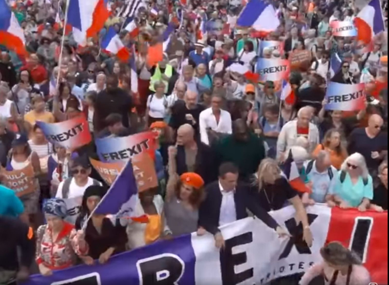 Szombaton több százan csatlakoztak a Frexit mozgalom párizsi tüntetéséhez, hogy Franciaország Európai Uniós és NATO-tagsága ellen tiltakozzon.