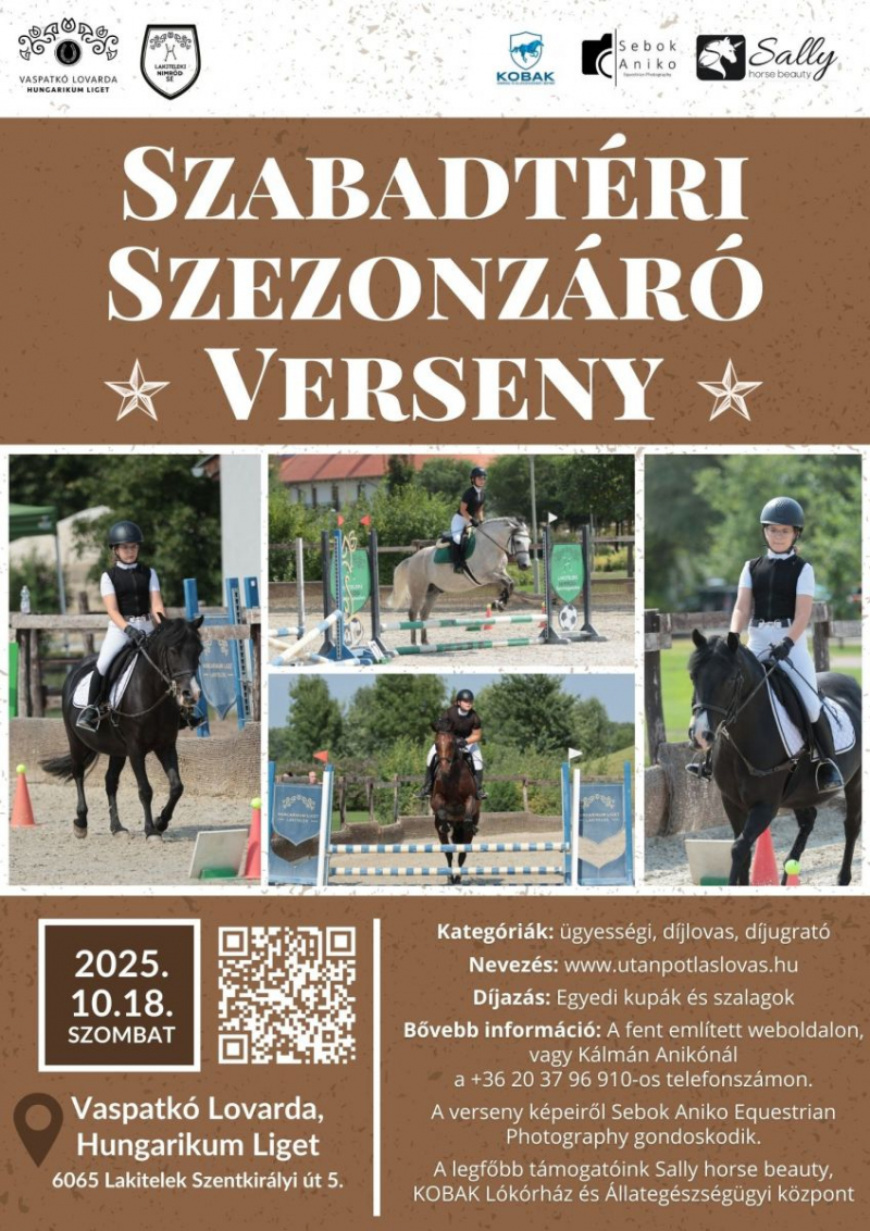 Szeretettel várják a lovassport szerelmeseit 2025. október 18-án, Lakiteleken, a Vaspatkó Lovardában megrendezésre kerülő Szabadtéri Szezonzáró Versenyre!