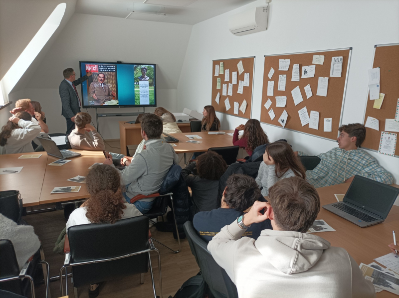 Diákcsereprogram keretében a Kecskeméten tartózkodó pontoise-i École Saint Martin erasmusos diákcsoportja kereste fel a Rendszerváltás Történetét Kutató Intézetet október 16-án.