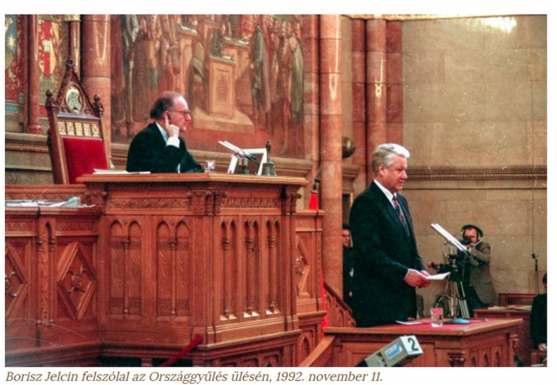 1992. november 11-én került sor Borisz Jelcin orosz államfő történelmi budapesti látogatására: az Orosz Föderáció elnöke, látogatásával, Göncz Árpád köztársasági elnök és Antall József miniszterelnök meghívásának tett eleget. A Mihail Gorbacsov által az utolsó pillanatig erőltetett Szovjetunió fenntartásával szemben Oroszország saját szuverenitásának visszaállítását zászlajára tűző Jelcin magyarországi fogadását nagy várakozás előzte meg, lévén 1945 óta először tárgyalhattak a magyar vezetők partnerként az orosz premierrel. Bár a Vörös Hadsereg utolsó alakulatai 1991. június 16-án elhagyták hazánkat, a Szovjetunió pedig 1991. december 25-én megszűnt, az elmúlt négy és fél évtized árnyai alapjaiban határozták meg a magyar–orosz tárgyalások fonalát. Oroszország, a szerintük „hátrahagyott” katonai létesítményekért igényelt kártérítést, míg hazánk a Vörös Hadsereg csapatai által okozott környezeti károk helyreállítási költségeinek megtérítését követelte a volt megszállóktól. Ennél jóval jelentősebb és konkrétan számszerűsíthető magyar igényt jelentett az a különbözet, mely az immár egykori Szovjetunió kétmilliárd dollárnyi kereskedelmi tartozása, illetve a 300 milliós magyar tartozás között állt fenn. Végül, de nem utolsó sorban a magyar kormány joggal kérte és számított a második világháborúban a szovjetek által elkobzott (ellopott) műalkotások visszaadására, valamint kérte az orosz levéltárakban őrzött, az 1956-os forradalomra vonatkozó dokumentumok mielőbbi átadását is.