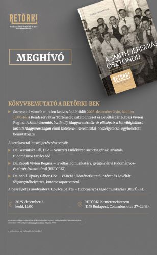 2025. december 2-án, kedden 15 órától a Rendszerváltás Történetét Kutató Intézet és Levéltár XIV. kerületi Columbus utcai konferenciatermében kerül sor Rapali Vivien Regina A Smith Jeremiás ösztöndíj. Magyar mérnök- és elitképzés a két világháború közötti Magyarországon című kötetének kerekasztal-beszélgetéssel egybekötött bemutatójára.