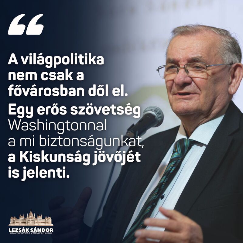 A világpolitika nem csak a fővárosban dől el. Egy erős szövetség Washingtonnal a mi biztonságunkat, a Kiskunság jövőjét is jelenti - írta közösségi oldalán Lezsák Sándor, az Országgyűlés alelnöke, a Lakitelek Népfőiskola Alapítvány vezetője."Hatalmas elismerés Magyarországnak, hogy Donald Trump amerikai elnök hazánkba tervezi a látogatását. Elismeri, hogy a mi utunk – a szuverenitásra, a családra és a békére épülő út – a helyes.