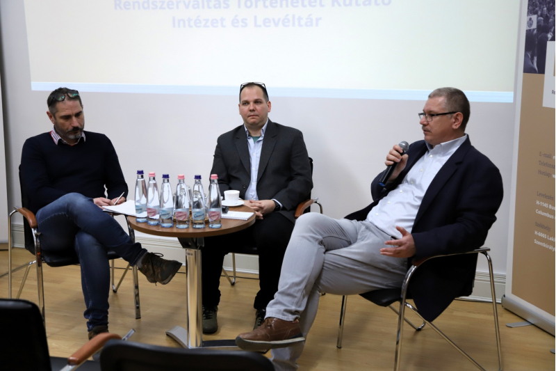 A Rendszerváltás Történetét Kutató Intézet és Levéltár tanácstermében, 2026. február 10-én került sor Müller Rolf (tudományos kutató, osztályvezető, ÁBTL) és Ivánfi Miklós (egyetemi tanársegéd, ELTE BTK Történeti Intézet Új- és Jelenkori Magyar Történeti Tanszék) műhelybeszélgetésére, amelyet Intézetünk tudományos igazgatója, Strausz Péter moderált.